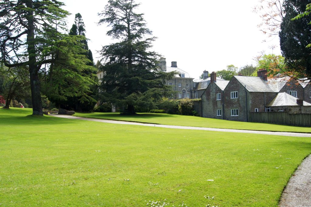 Die Wirtschaftsgebäude, die teilweise noch älter sind, haben Steinfassaden. Die Familie Molesworth-St Aubyn bewohnt das Haus noch heute.