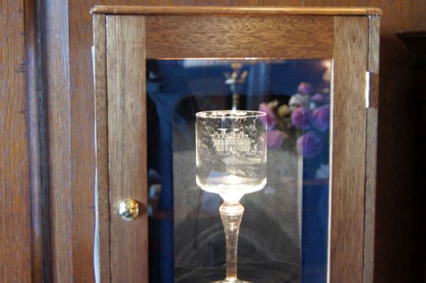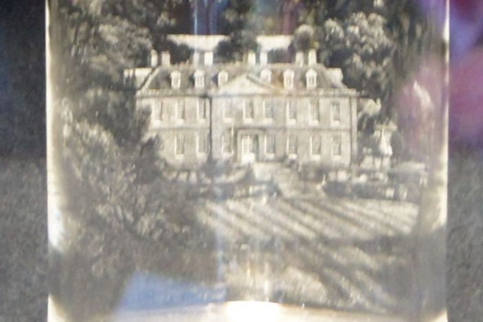 Ein Bild des Hauses ist eingraviert, überraschend, wie fein und genau das Bild gearbietet ist. |