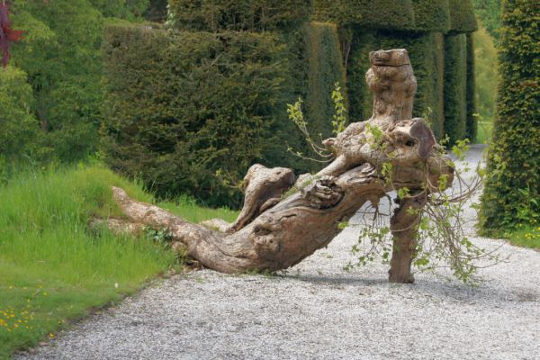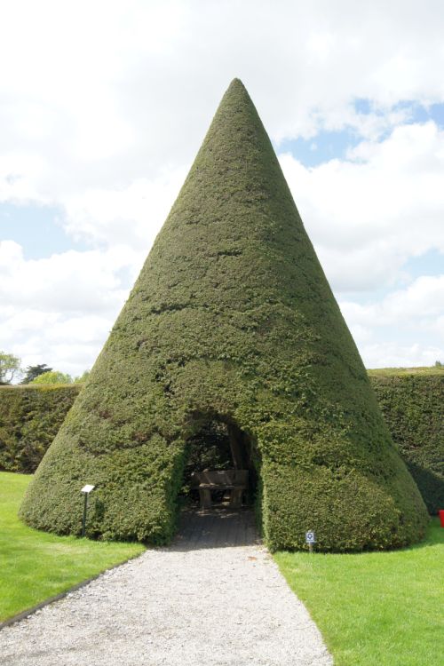 Diese Eibe hat man vor langer Zeit so beschnitten, damit eine der Frauen vom Schatten aus beim Tennis zuschauen kann. Sie soll