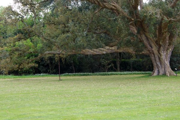 | Eine Korkeiche. Der waagrechte Ast, der mit einer Stütze und mit Seilen gehalten werden muss, ist 20 m lang. |