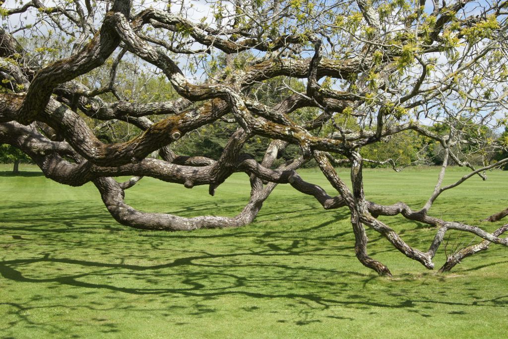| So wie bei diesem Nussbaun sieht man es oft, dass die Äste zum Boden absinken und dann wieder die Richtung ändern. |
